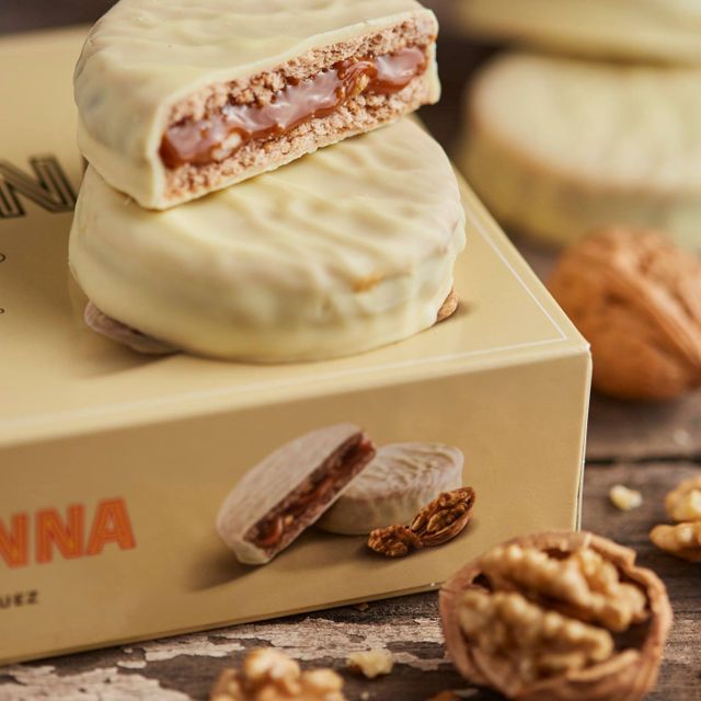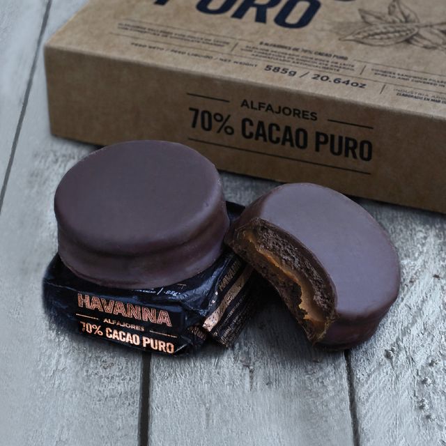 Alfajores rellenos con dulce de leche con cobertura de chocolate 70% cacao