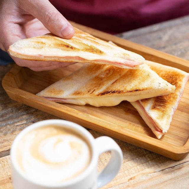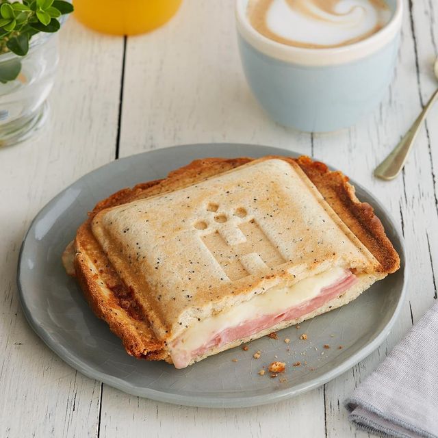 Pan con semillas de amapola, relleno con queso muzzarella, provolone, pategras y Jamon cocido.