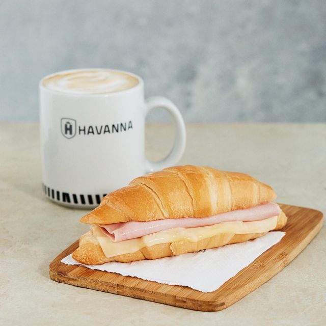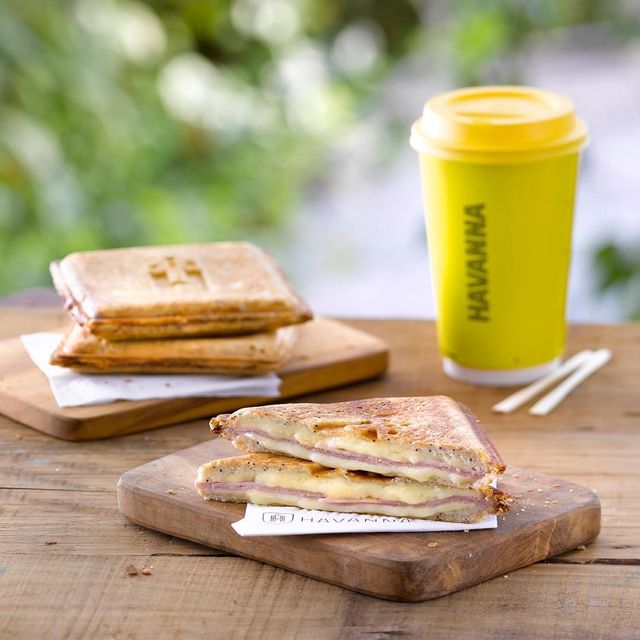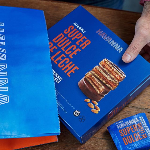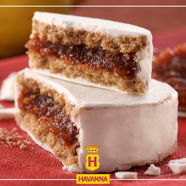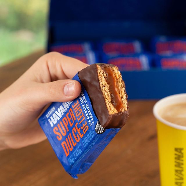 Combinación helada de crema tramontana havanna, espresso, medallón y leche, cubierto de crema batida, salsa de dulce de leche y pedacitos de alfajor de chocolate.