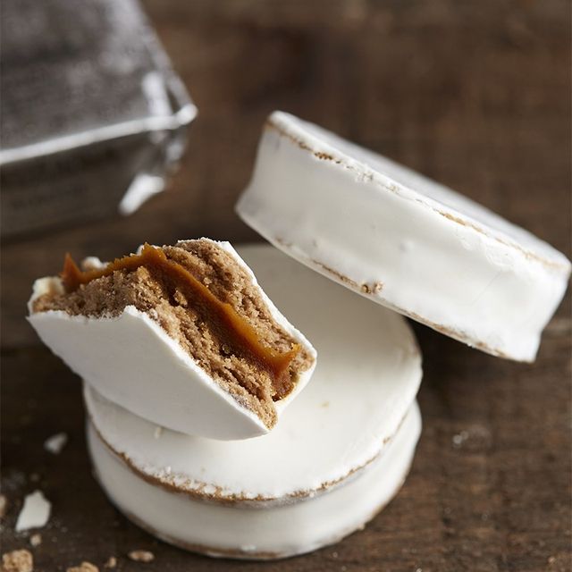 Alfajores rellenos con dulce de leche con cobertura de chocolate