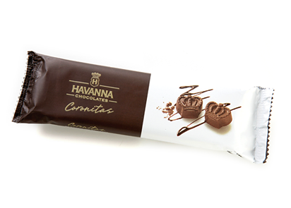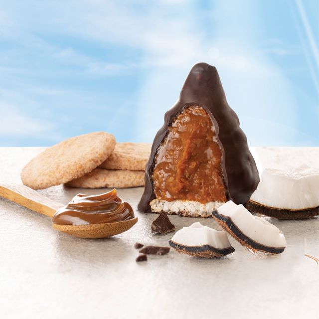 Relleno de dulce de leche y coco con cobertura de chocolate amargo.